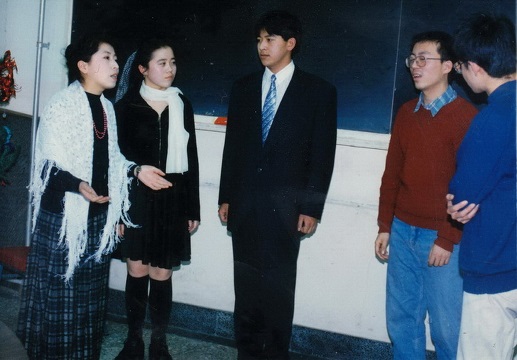 Немного странным было и то, что выступать пришлось на новогоднем вечере, тема же спектакля как-то к этому не вязалась. На вечер пришли студенты других курсов, все преподаватели кафедры и даже преподаватели кафедры, которые уже вышли на пенсию. Есть такая хорошая традиция в Китае, на свои праздники приглашать ветеранов в знак уважения за их труд прежних лет. Таким образом люди, вышедшие на пенсию, не считают себя лишними, более того, как бы продолжают быть в курсе событий, происходящих на их бывшем рабочем месте.