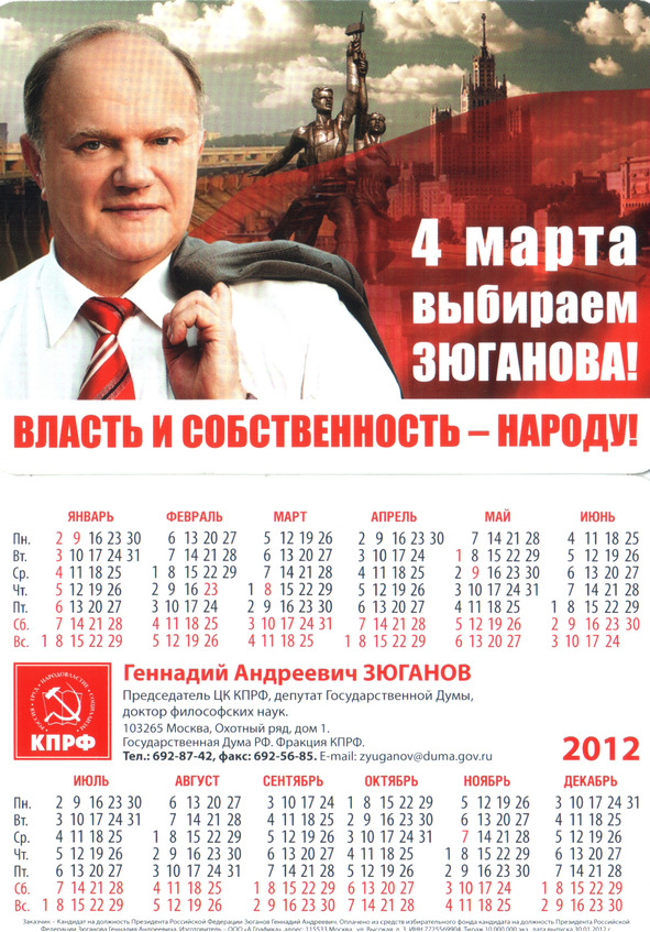 С народным пошли ополчениемВсе коммунисты в стране,Заводы построят, дороги,И это не будет во сне.Скоро уж все прояснится,Кто в президентство войдет.Вставай, избиратель ленивый,Не будь для страны идиот.Ты, мой читатель, серьезный:Критик, поэт, рецензент,Все эти строки дополни,Для этого самый момент.Товарищ! Ты хочешь улучшитьИндекс счастливости свой?Умником не притворяйсяИ в безразличьи не стой.Все кандидаты достойны,Все обещают нам благ,Но будем с рассудком, спокойноНужнейший поддерживать флаг.За счастье всенародное пойдем голосовать.