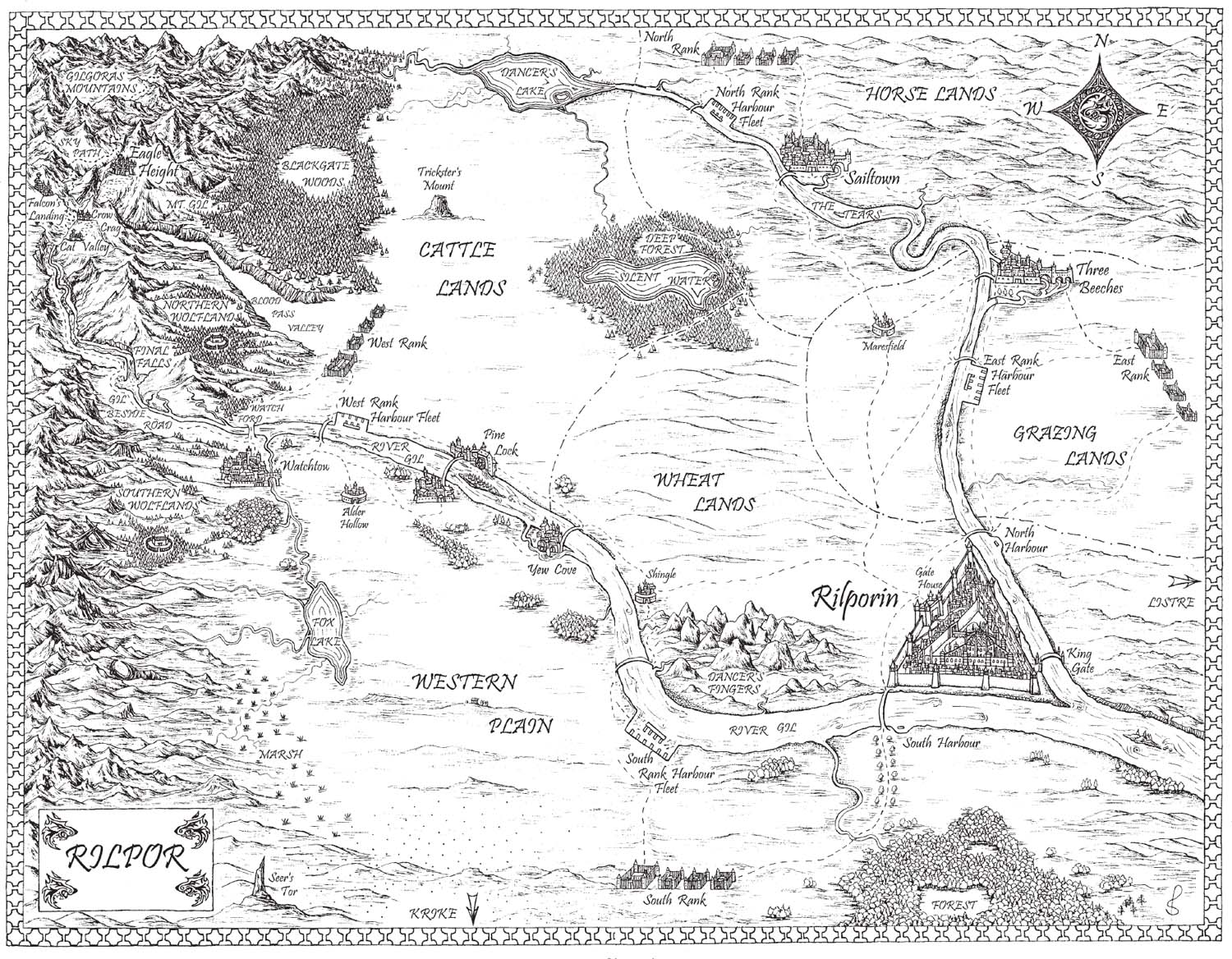 The Blessed One hissed and drew all eyes back to her. ‘Our gods are trapped on the borders of Gilgoras like us, but They weave Their holy work inside its bounds nonetheless. With the help of my high priest, Gull, who lies hidden in the very heart of Rilpor, They draw one to Them who can finally see Their desires fulfilled.’ She bared her teeth. ‘Know this now, and rejoice in the knowing. The gods’ plans are revealed to me, and soon enough to you. Begin your preparations and make them good. Come the spring, we do not raid. Come spring, we conquer. And by midsummer, we will have victory not only over Rilpor but over their so-called Gods of Light as well.’