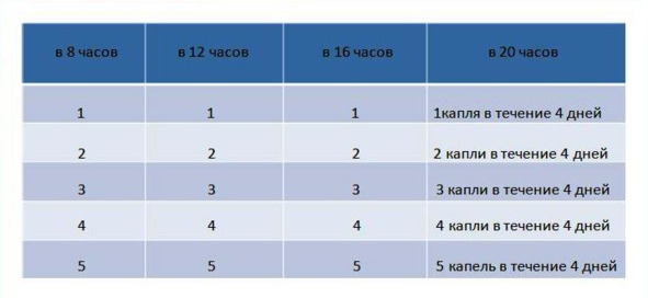 По этой методике, дозу в 5 капель больше не подымают до самого выздоровления. Наращивая число капель каждые 4 дня, следует заметить, на какой дозе почувствуете облегчение и дальше ориентироваться именно на это число капель. И вовсе не обязательно, что их должно быть 5. Спустя некоторое время можно попытаться довести дозу до 5 капель, но очень осторожно! Не допускать передозировки!