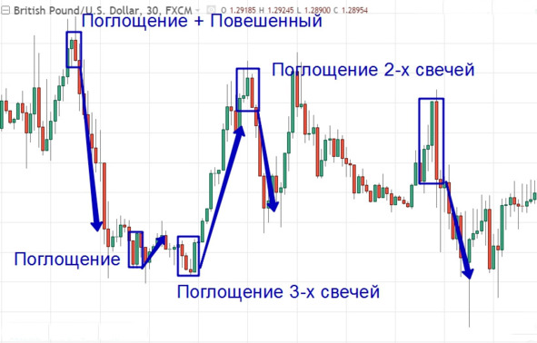 Свечные паттерны – это определенные комбинации свечей, которые могут указывать на потенциальные изменения тренда или его продолжение: