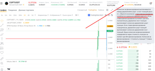 Четырехчасовой период фандинга особенно показателен, так как он позволяет увидеть устойчивость тренда. Если отрицательный фандинг сохраняется на протяжении нескольких четырехчасовых периодов, это может указывать на сильное медвежье перенасыщение рынка и потенциальную возможность отскока цены вверх. Что мы и видим на рисунке – тренд вверх, но на самом деле продавцов этой монеты в рынке существенно больше, чем покупателей.