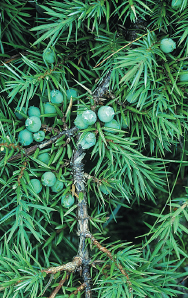 Dense shrub of well-drained soils, from chalk downland to mountains. FLOWERS On separate-sex plants; those on female plants are green and oval (much of year). FRUITS Ripening in second year to form blue-black berry-like cones. LEAVES Stiff, bluish green, needle-like, in whorls of 3. STATUS Widespread and locally common.