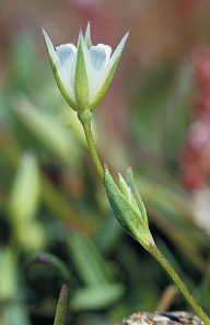 Tufted, mat-forming perennial whose stems and leaves bear long white hairs. Found on stony ground on mountains. FLOWERS White, 18–25mm across, with 5 notched petals (June–Aug). FRUITS Capsules. LEAVES Ovate, the bracts having membranous margins. STATUS Local and scarce, restricted to mountains.