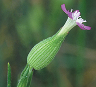 Upright, stickily hairy, greyish-green annual. Found on sandy soils, mainly coastal. FLOWERS 4–5mm across, with 5 notched and pinkish petals; in clusters (May–July). FRUITS Forming within inflated, flagon-shaped capsules. LEAVES Narrow, downy. STATUS Local and scarce, restricted mainly to coastal SE England.