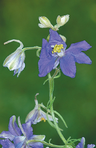 Downy annual that is occasionally found in arable field margins. FLOWERS Bluish, comprising 5 petal-like sepals and a long, backward-pointing spur; in loose spikes (June–Aug). FRUITS Dry, many-seeded. LEAVES Deeply divided into palmate lobes. STATUS Introduced (often grown in gardens) and occasional.
