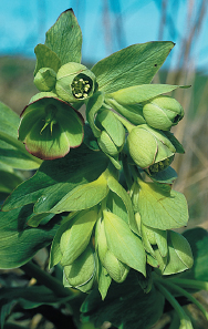 Robust, strong-smelling perennial of woodland on calcareous soils. FLOWERS Green with purple margins, 15–30mm across, bell-shaped; in clusters (Jan–May). FRUITS Dry, many-seeded and splitting. LEAVES Divided into toothed lobes; lower ones persist through winter. STATUS Local and restricted to central and S England and Wales.