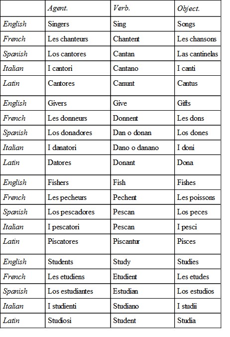 In this respect, many foreign languages possess a great advantage over ours. They can augment or diminish the same word to increase or lessen the meaning. For instance; in the Spanish, we can say Hombre, a man; Hombron, a large man; Hombrecito, a young man, or youth; Hombrecillo, a miserable little man; Pagaro, a bird; Pagarito, a pretty little bird; Perro, a dog; Perrillo, an ugly little dog; Perrazo, a large dog.