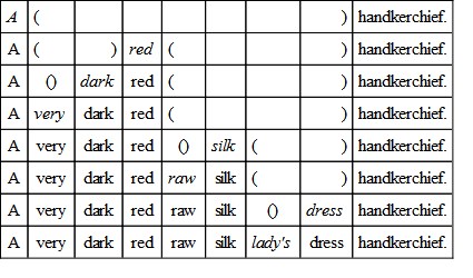 The words which are added to other adjectives, to increase or diminish the comparison, or assist in their definition, may properly be called secondary adjectives, for such is their character. They do not refer to the thing to be defined or described, but to the adjective which is affected, in some way, by them. They are easily distinguished from the rest by noticing this fact. Take for example: "A very dark red raw silk lady's dress handkerchief." The resolution of this sentence would stand thus: