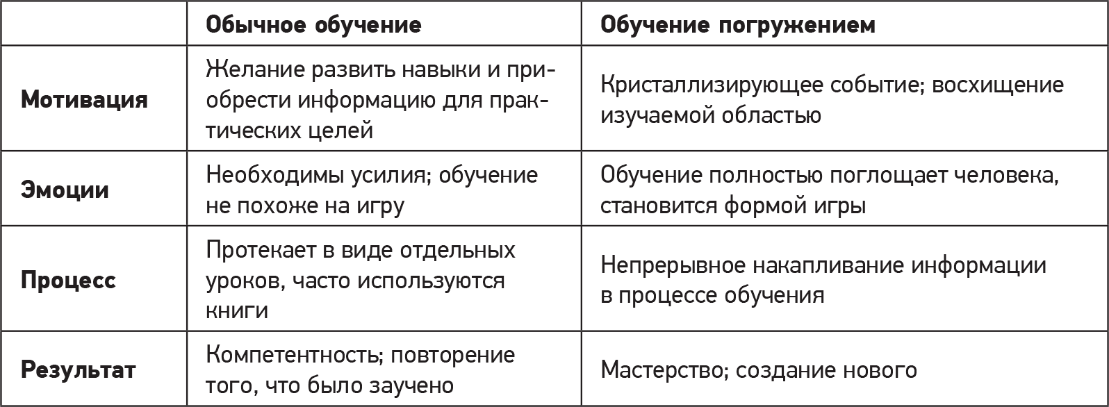Таблица 3. Обычное обучение и обучение погружением