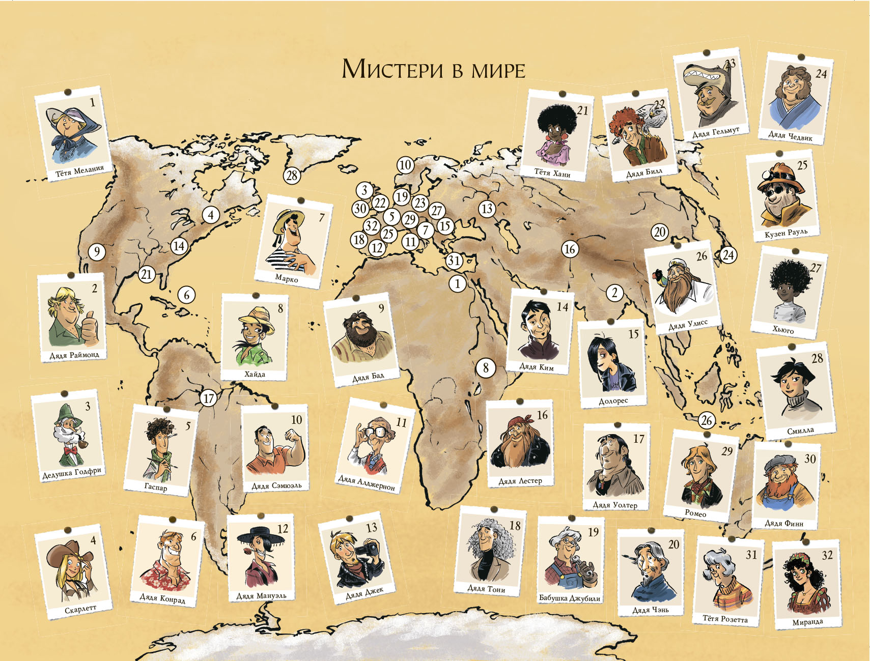 С этими словами она подбежала к семейному генеалогическому древу, где были отмечены место жительства, род занятий и степень родства всех Мистери в мире.