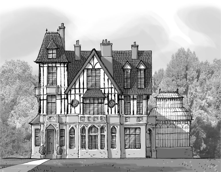 Дом семейства Мистери, Мистери-Хаус, представлял собой величественный особняк в викторианском стиле[2] с синей черепичной крышей, окружённый огромным ухоженным садом. Прохожие то и дело путали этот сад с общественным парком и останавливались перед монументальной оградой, чтобы прочесть график работы. Не найдя никаких указателей, они, разочарованные, отправлялись дальше петлять между помпезными и мрачными особняками района.