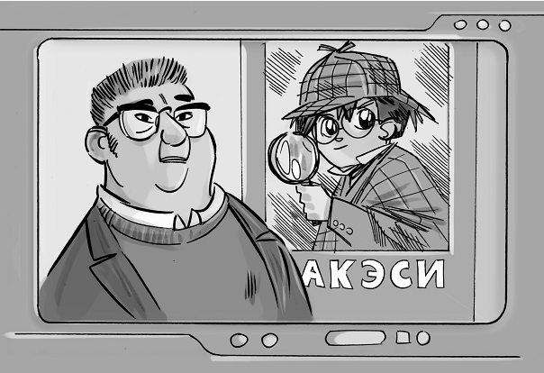 – Видишь этого парня в очках, кепи а-ля Шерлок Холмс и с лупой в руке? Это и есть детектив Акэси.