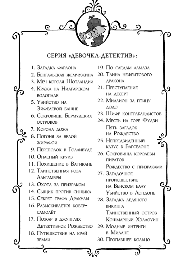 – Мне рассказывали о нём родители, – поделилась юная сыщица. – Они дружили с прежним владельцем, неким Гордоном О’Клоком, который позднее исчез при невыясненных обстоятельствах. Возможно, однажды мы расследуем эту загадку. А пока давайте возьмём и энциклопедию тоже, вы не против?