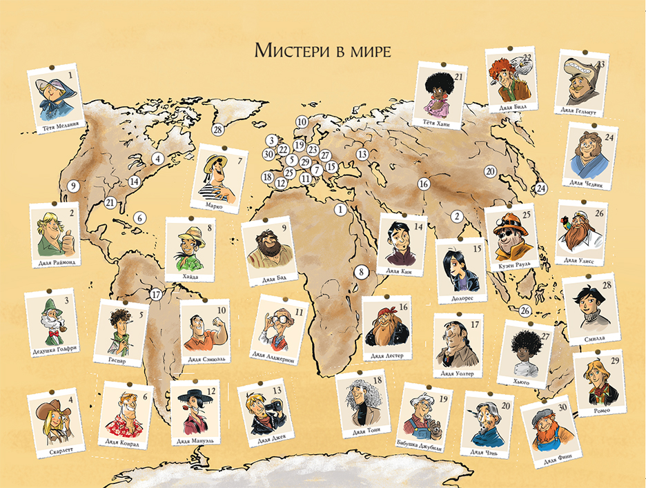 Агата аккуратно опустила белого кота на пол и подошла к глобусу, утыканному десятками карточек с именами и адресами членов обширного семейства Мистери.