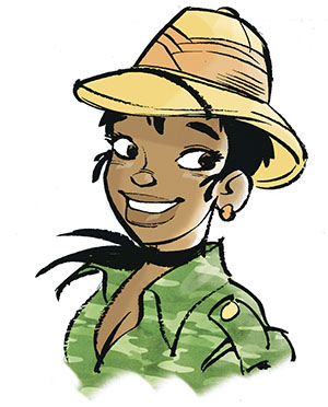 Энергичная молодая женщина с короткой стрижкой. Руководит агентством «Сафари без границ».