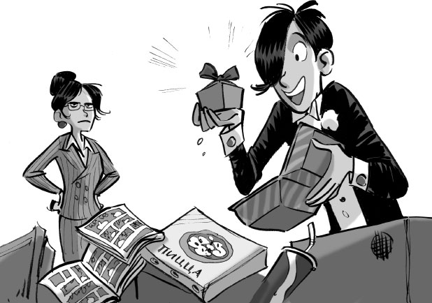 – Ура! – возликовал он, доставая из пустой коробки из-под гамбургера пакетик, немного перемазанный кетчупом. – Видишь? Не так уж это и плохо – не спешить с уборкой!