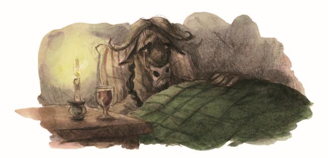 – Поторопись, живо, – прервал он меня, и я никогда прежде не слыхал такого жёсткого, холодного и отвратительного голоса, как у этого слепого. Этот голос подействовал на меня сильнее, чем боль, и я послушно повёл гостя в общую комнату, где за столом, отуманенный ромом, сидел капитан. Слепой сжимал мою руку в своём железном кулаке и опирался на меня всей своей тяжестью, так что я едва мог вести его.