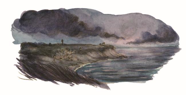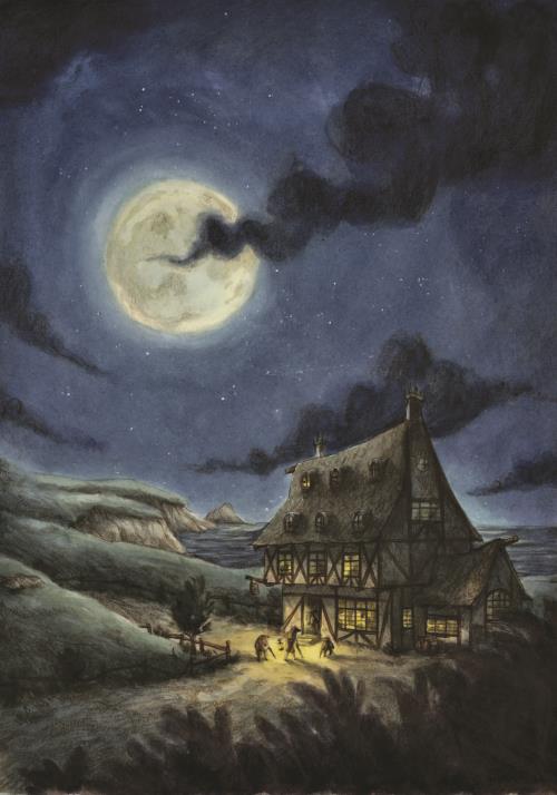 Когда мы добрались до деревушки, повсюду в домах уже горели огни, они успокаивали нас своим тёплым светом, напоминали об уюте, простом и незатейливом быте обычных людей, которые знать не знают о пиратах, чёрных метках и страшных слепых нищих, собираются ужинать, молятся и укладывают детей спать. Совсем недавно я тоже был таким же обыкновенным ребёнком. А сейчас бегу вместе с матерью по пустынной дороге и только и надеюсь что на помощь добрых людей. Я никогда не забуду, как приятно и успокоительно подействовали на меня эти жёлтые огоньки, видневшиеся в окнах.