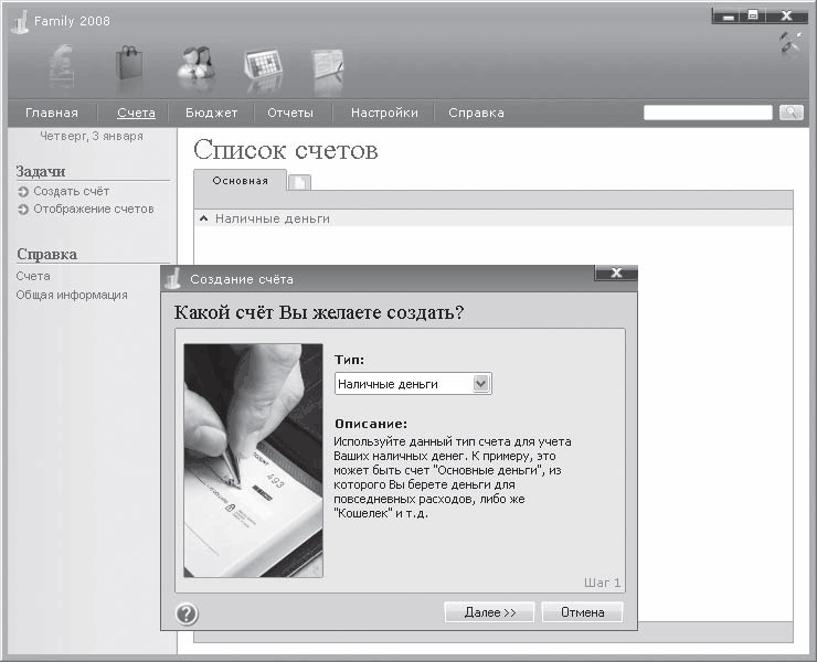 3. На первом шаге выберите тип счета. В данном случае это Наличные деньги (рис. 1.5).
