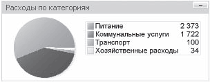 Программа постепенно накапливает статистику, основанную на вносимых вами сведениях о совершаемых операциях. Ради этой статистики, собственно, и производится весь учет. На главной странице постоянно отображается структура расходов по категориям. Сумма всех расходов на диаграмме принимается за 100 % (рис. 1.8). На основе предлагаемой диаграммы вы можете оценить соотношение отдельных категорий расходов.