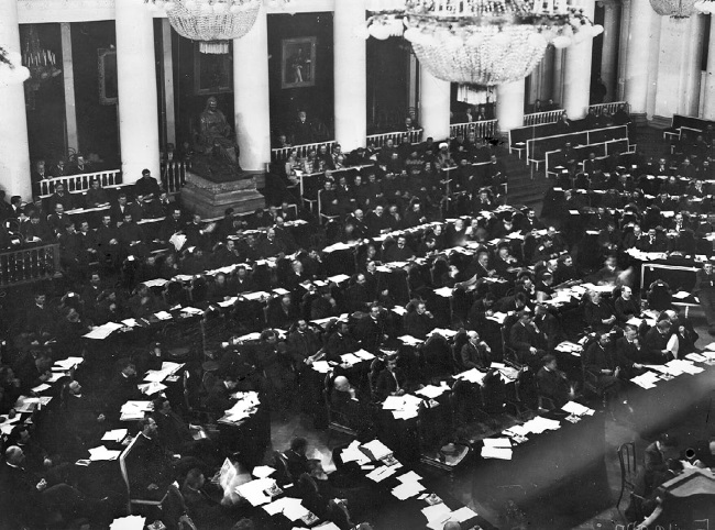 Депутаты Первой Государственной думы в зале заседаний Таврического дворца. 1906 г.