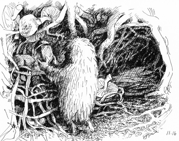 Время шло. В осенний лес пришли ветра, принеся с собой особо холодный, моросящий дождь, проникающий даже сквозь шерсть. Вместе с холодами Зов становился все сильнее. Иногда даже внутренний голос не мог его одолеть. В такое время Абрбнуль выбирался из норы и бродил по окрестностям. Однажды, в особенно промозглый осенний день, он опять встретил Абрпчихендрилла. Тот чихал, и на этот раз казалось, что не столько для забавы, сколько от простуды.