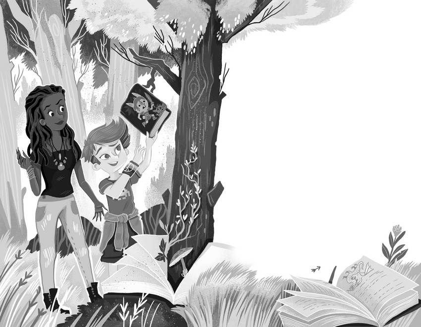 Фэйт сделала несколько шагов вперёд и показала на ветки ближайшего дерева. Среди листьев-страниц, словно спелый фрукт, висела книга под названием «Магический суперквест». На обложке был нарисован мультяшный кролик в доспехах, а рядом с ним – гоблин.