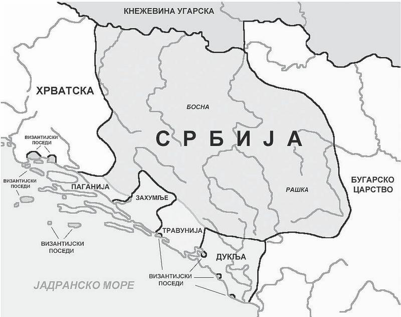 Кроме Рашки известны и другие сербские общины, ставшие впоследствии государственными образованиями. Так, между Цетиной и Неретвой[9] находилось Неретвлянское княжество, которое византийцы называли Паганией. Между Неретвой и Дубровником[10] располагалось Захумье, а за Дубровником были Травуния и Конавле. Южнее, в границах современной Черногории, располагалась Дукля, она же Зета, а на Динарском нагорье между правыми притоками Савы Дриной и Босной простиралась Босния.
