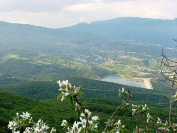 Вид на Изобильнинское водохранилище и село Корбеклы