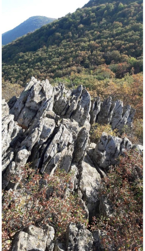 Повсюду разбросаны глыбы этих пород, естественным образом закругленные. Разлом, по которому вытекает вода источника Ай-Йори, фактически сохранил этот горный массив от разрушения, освобождая его во время землетрясений от тектонических напряжений.