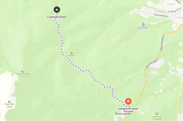 Маршрут следования от с. Виноградное к скале Ай-Йори