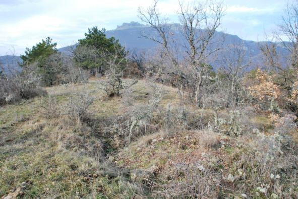 На фото виден небольшой холмик. Он слева от начала холма с дольменами. Дольмены находятся на его продольной вершине далее, справа от сосен.