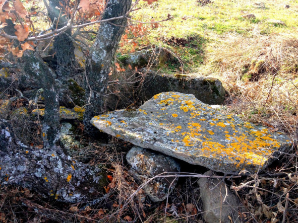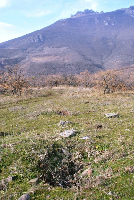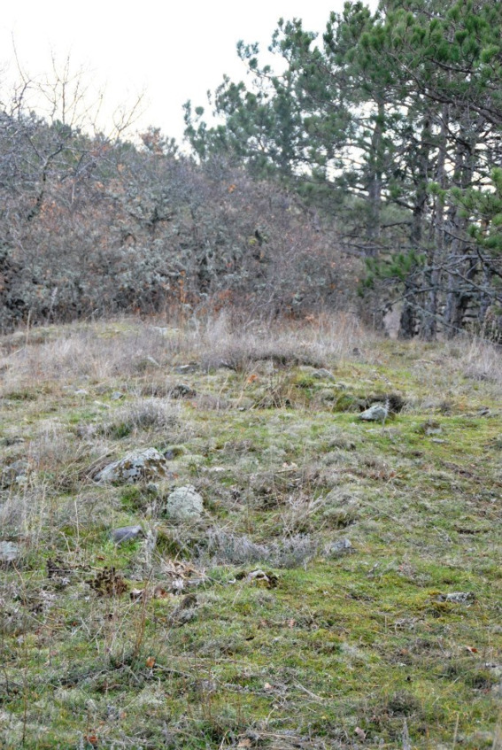 Здесь обнаружены были остатки двух дольменов, стенки которых ещё просматриваются среди травы, выступая из почвы.