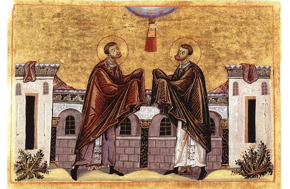 Из жизнеописания святых бессребреников Косьмы и Дамиана, во имя которых устроен этот небольшой монастырь, видно, что эти два брата-врача, сделавшись христианами, посвятили себя на безвозмездное врачевание и помощь страждущему человечеству, жили они в Риме, там умерщвлены своим завистником-учителем и погребены «при потоке вод».