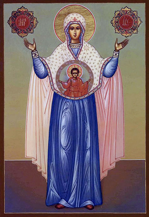 И еще хочу сказать, что образ «Покрова», как и образ «Знамение» и «Неупиваемая чаша» возникли первоначало из образа Софии – Премудрости Божией. Любой образ БогоМатери, на котором она изображена с поднятыми руками, к примеру «Оранта» – это и есть София.