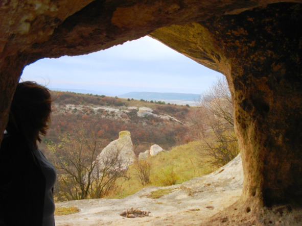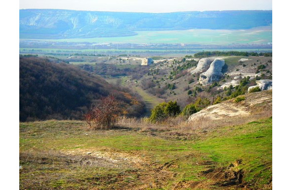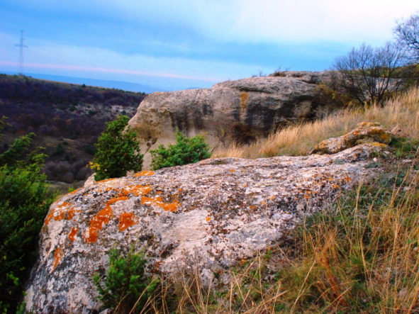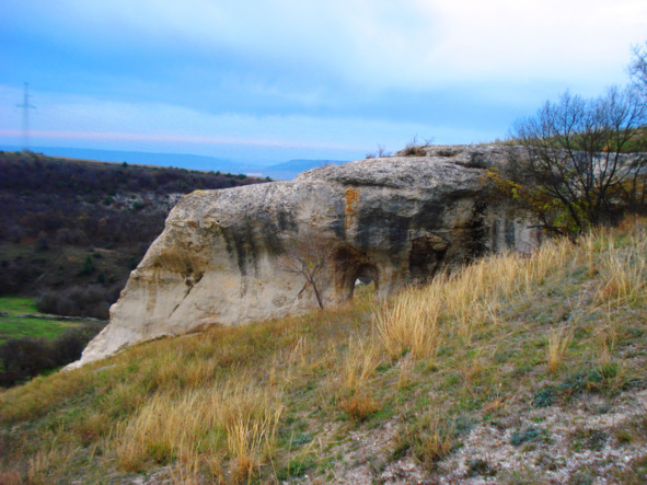 В скале, к востоку от менгира, далеко на противоположной стороне обширной котловины, светится сквозное отверстие – явление нередкое на Второй гряде Крымских гор.