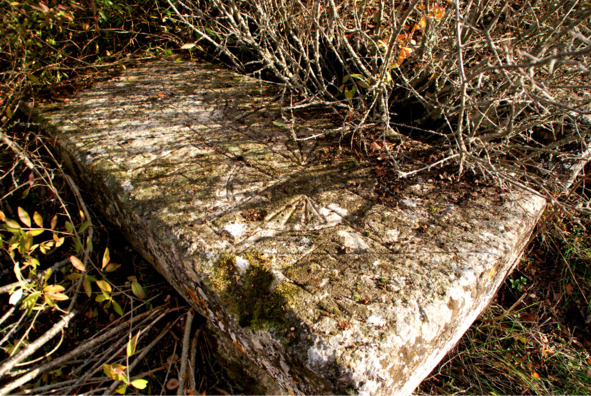 Остатки этой скалы и по сей день можно еще видеть, но ее средняя часть была специально уничтожена что бы «соединить» линию между скальным выступом за пещерой с отверстием в пещере и менгиром.