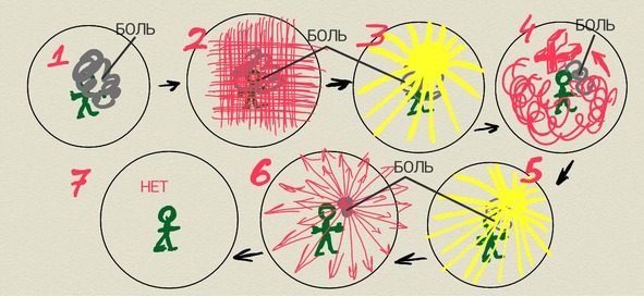 Нарисуйте «пятно боли» на бумаге или пальцем на любой поверхности. Разгоняйте это пятно во все стороны.