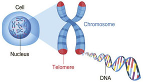 Telomere sind die Schutzkappen am Ende jedes Chromosoms (Chromosome sind Bestandteile unserer Gene und enthalten unsere Erbinformation). Bei jeder Zellteilung werden diese Schutzkappen etwas verkürzt. Bei alternden Zellen geht also die Länge der Telomere zurück. Diese Verkürzung ist eine wesentliche Ursache für den Alterungsprozess. Das „Jungbrunnen-Enzym“ Telomerase wirkt dieser Verkürzung der Telomere entgegen und verlangsamt den Alterungsprozess. Die Aktivierung des Enzyms Telomerase wird durch Intervallfasten, Ausdauersport und Intervalltraining (hier wird abwechselnd in Belastungs- und Erholungsphasen trainiert), Meditation und bestimmte Pflanzenstoffe, wie z. B. Ashwagandha und Astragalus, angeregt.