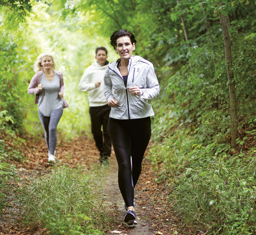 Weiters helfen Sport und Bewegung, Körperfett zu reduzieren, da mehr Muskelmasse zu einem höheren Grundumsatz führt, also mehr Kalorien verbraucht werden. Und ganz nebenbei steigert regelmäßiger Sport das körperliche Wohlbefinden, die Körperwahrnehmung, Selbstdisziplin und das Selbstbewusstsein von Menschen. Wenn Sport nun noch in der freien Natur praktiziert wird, stellen sich auch die gesundheitsförderlichen Effekte eines Waldbades ein (siehe „Der Jungbrunnen-Effekt“, Band 1, Seite 92).