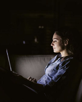 Das Licht von Bildschirmen stört den zirkadianen Rhythmus am Abend und in der Nacht.