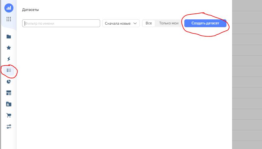 Заходим в раздел Датасеты и выбираем Создать датасет.