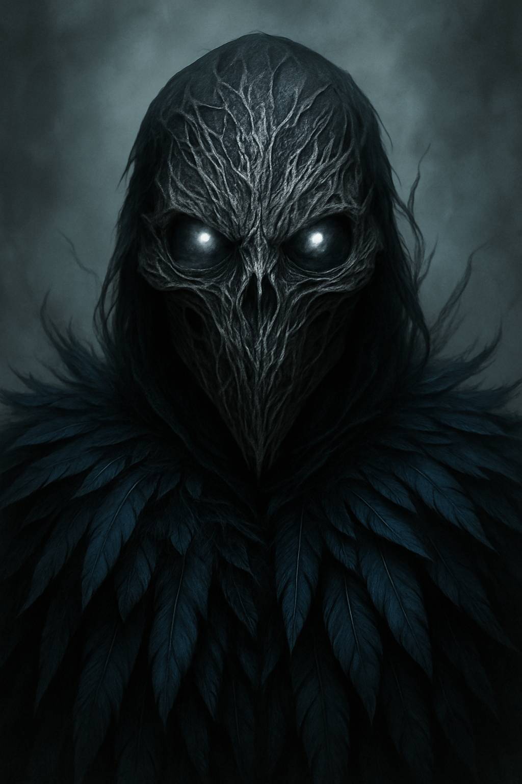 В следующую секунды от тьмы отделилась и шагнула к нему высокая фигура. Лицо было скрыто маской сделанной будто из множества переплетенных костей, между которыми блуждали сгустки черных теней. Тело было покрыто плащом, сотканным из множества вороньих перьев. Из впадин глазниц на Ивана смотрели два серебристых огонька светившихся в темноте, как у существ из кошмаров. Фигура будто дымилась, но это был не дым. Множество черных сгустков мрака исходили от него. Само это существо было тенью.