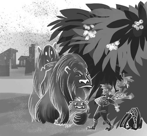 – Эй, подождите! – закричал было он вслед группе, но сразу осёкся. Прямо перед ним сидела гигантских размеров жаба, раз в пять больше него. Нервно сглотнув, мальчик зажмурился, но вскоре любопытство взяло верх, и он приоткрыл один глаз. По счастью, жабу интересовал не он: чудовище молниеносно выбросило язык в пару метров длиной и мгновением позже отправило в пасть не успевшую даже вскрикнуть птицу. Одним прыжком жаба перемахнула через Мишу и исчезла в зарослях.