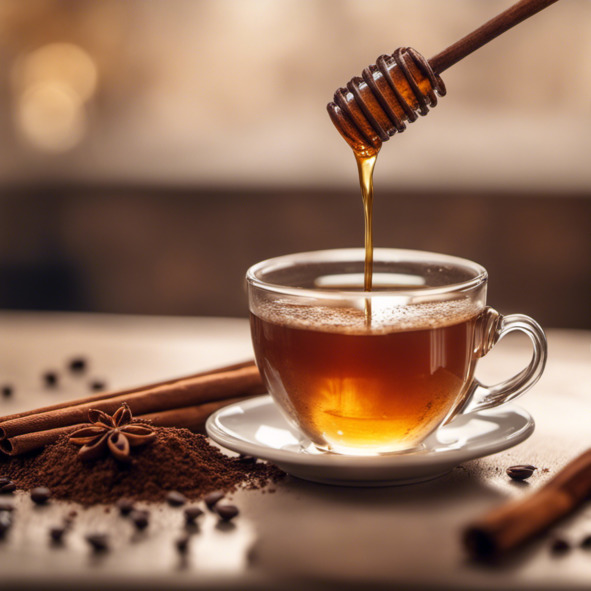 После того, как кофе приготовлен, добавьте в чашку 1 чайную ложку меда.