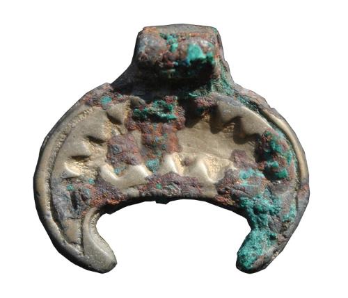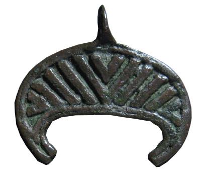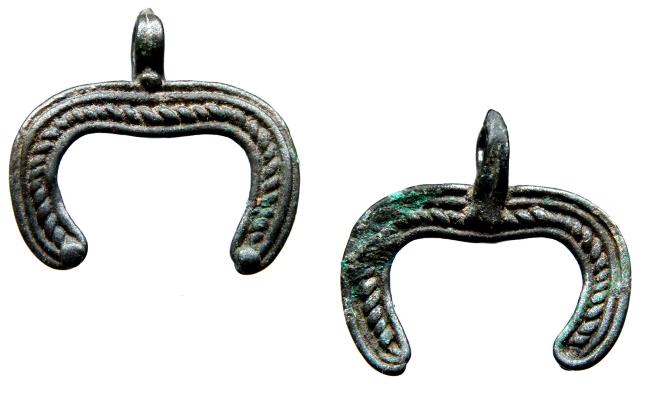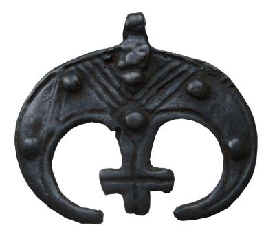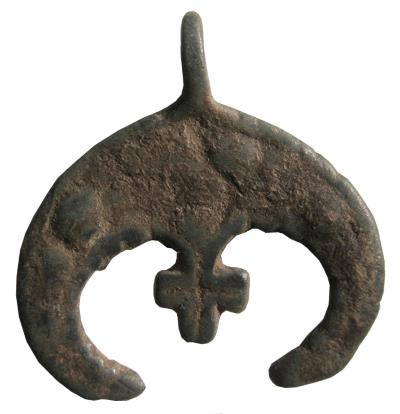 Наряду с крестом на Руси был чрезвычайно популярен другой нательный знак, идентичный рассматриваемому «полумесяцу», с той только разницей, что носился он «рогами» вниз, поскольку ушко для цепи или веревки прикреплялось к выпуклой стороне. Это был распространеннейший оберег, который в современной археологии получил название «лунница». По неизвестной причине археологами был сделан вывод, что это оберег, который носили в основном женщины. Возможно, причиной послужило то, что луна и лунные циклы традиционно связаны с женской энергетикой и, соответственно, атрибутикой (Рис. 15—Рис. 20).