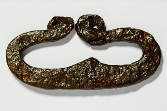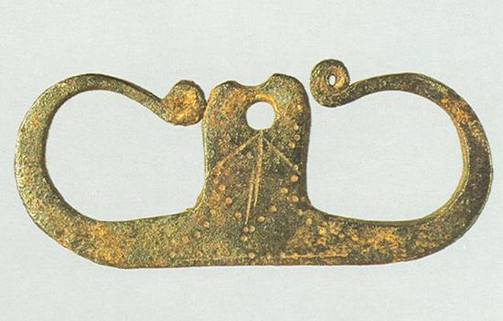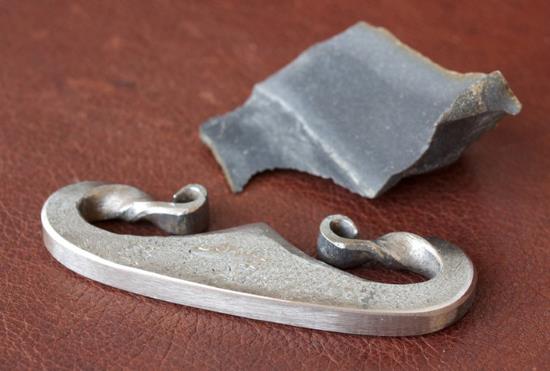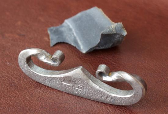 Узор на «лунницах» тоже часто имеется. Это могут быть языческие символы, но могут изображаться и более прозаические вещи. Например, на рис. 37 представлен «зубастый» узор, который, по-видимому, аллегорически напоминает о насечке, которая часто делалась на «рабочем крае» кресала, чтобы оно лучше высекало искры. Впрочем, узор может обозначать и огонь, искру, которая возникает при соударении кремня и кресала (Рис. 37).