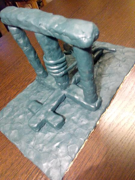 Итак, подытожим. Изображение православного креста представляет собой не что иное, как «установку» для добычи священного огня, если смотреть на нее сверху. Получается, что крест как бы «лежит» на земле. На нем монтируется «надземная» часть. В горизонтальную перекладину встают три вертикальных столба – два по краям и один в центр, на пересечение. Сверху на эти столбы помещается еще одна перекладина, которая удерживает их от падения. Центральный столб в данной конструкции – вращающийся элемент. На него навивается веревка, концы которой идут в ту сторону, где расположен «низ» «лежачего» креста. Именно за эти два конца члены Рода будут попеременно тянуть, приводя во вращательное движение центральный столб. На рисунках 44, 45, 46 и 47 представлена реконструкция, сделанная лично мною.