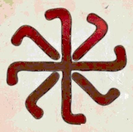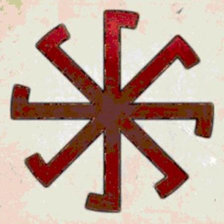 Данный символ именуется «Черное солнце» и соотносится с Навью, т. е. миром мертвых. Это изображение солнца ночью, когда его не видно. Считался символом магов, волхвов.